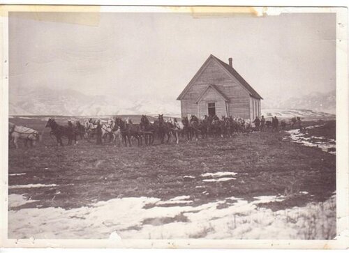 By 1903, the East Gallatin congregation was largely dwindled away and there was talk of moving the church building to Dry Creek. In May, Brothers Watson, Ballard, and Cowan were appointed to look into the cost of such a venture. Some folks said it was impossible to move the church so the people deliberated for over a year. There was some talk of letting the Cottonwood church have the building. Their offer was $600.00. Some wanted to tear the building down and move it and some wanted to let the contract to have it moved for $500.00. That was a lot of money and it was risky business. The building could be damaged or it might be impossible. One contractor started to move it by capstan but got only about one-half mile and gave up. Henry Cramer and Bill Brownell then took the contract and succeeded in moving the church about January 1905. They built two big bobsleds, one for each side of the building, and hooked about six teams on each side. Later they had to get more teams. They had hired men and their teams around the community. When they got to Mr. Brownell’s house (the present location of the Jim Soares’ residence) he wanted to stop for dinner, but everyone said, “No, let’s go on.” A little farther on they got stuck. The day was warm and the snow had melted in places and it was getting muddy. This must have been out on the flat in the area of A. M. Moore’s home (a little south and east of the Wally Duncan home). As soon as they were stuck, Mr. Brownell had them all unhook and feed their horses and come in to dinner. After dinner they went back to work. They jacked the runners up and put rollers under them and started out again. They even hauled snow in and put it in front of the runners. After several tries they were on their way again. All went well until they started up the little bank to where the church now stands; the chimney began to crack. They stopped and took the top part of the chimney down, handing the bricks down one at a time. This was the only damage the church suffered on the whole trip.